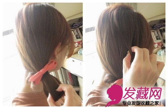 完成之后一样把上面的头发拉蓬。可以赢一个蝴蝶结发夹做装饰。