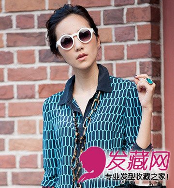 墨镜,利落的发髻,自信傲娇的表情,帅气的衬衫潮装,魅力出众。