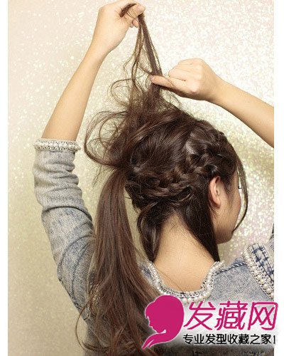 step 2:将辫子固定在马尾下放,再用手与梳子结合将妈诶挂乱弄蓬松。