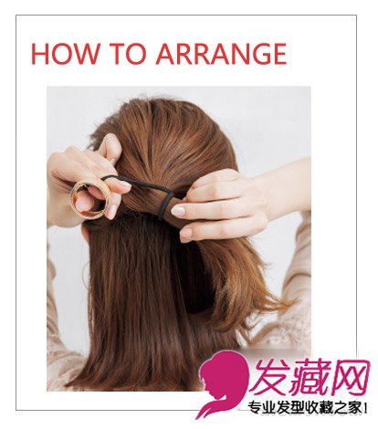 STEP 2:把两侧头发往后半扎,用发饰橡筋固定。
