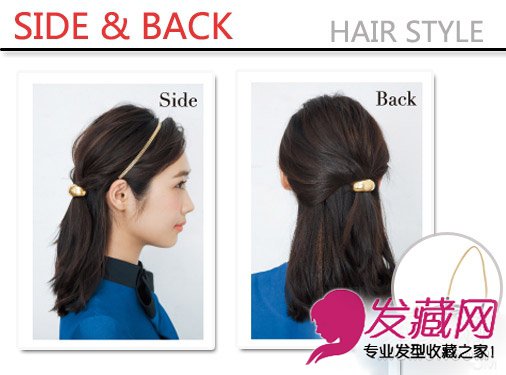 如果觉得半扎马尾过于常规,那么就把马尾侧扎,不影响发型的整体感觉,加上发带后反而显得更加典雅哦。