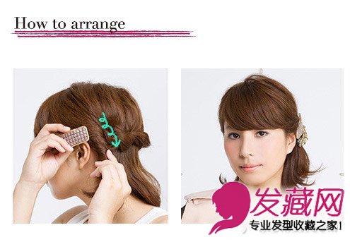 step3:扭转到左侧后用发饰固定,稍作打理即可。