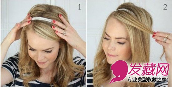 4、编至耳下时将3股并作一股,并将发束塞进发带内