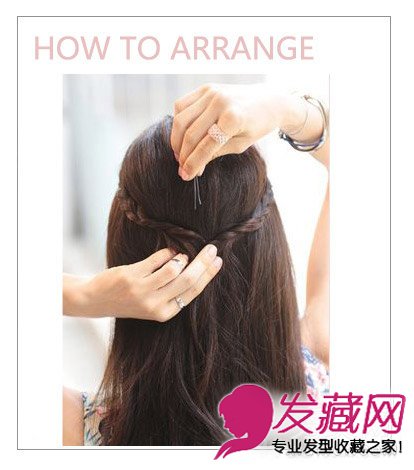step 3:用黑色发夹将两条小辫子固定,然后再将头发全部集中在侧边就完成了。
