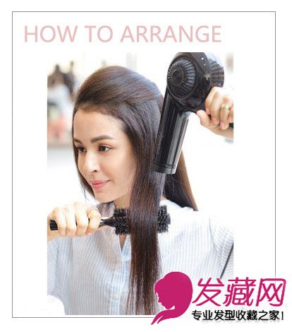 step 1:用吹风机与圆梳将头发稍微吹出一些弧度。