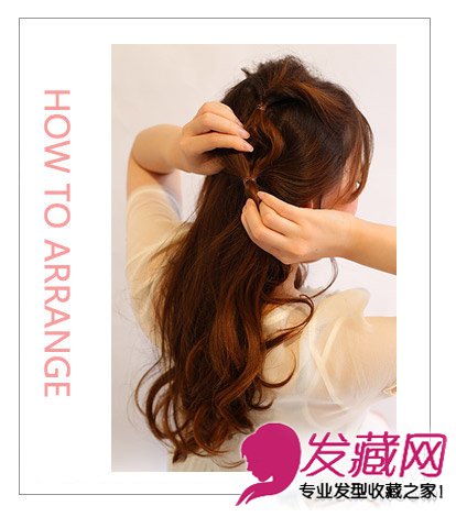 step 4:将上面的发束与下面小发束结合扎成一束,然后同样翻转发束