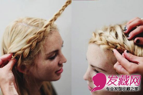 3:用右边的辫子沿着头上方绕一圈,用发夹固定好