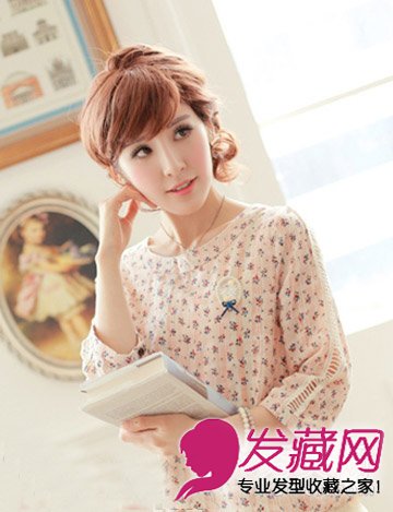 这是款日系的公主烫发型,橘红色系的头发,简单的扎起,清爽利落又显气质,斜刘海的设计,修颜效果不赖哦,甜美的笑脸,优雅小公主就这么简单。