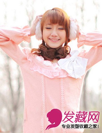 红棕色的发色,是时尚的流行元素,结合公主烫的造型,甜美范十足,打理成齐刘海双马尾的造型,清新可人又显青春活力,小清新人人爱哦。