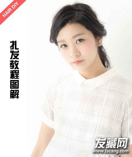 最后将发尾拉扯出蓬松低垂的公主头效果即可。