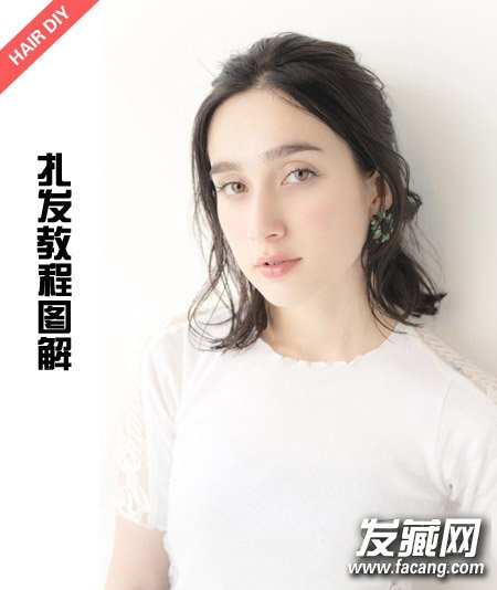这款扎发稍显凌乱,蓬松的卷发修颜显瘦。半扎发隐约露出精致的耳饰,绚丽十足。