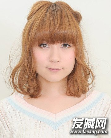 两侧的头发扭转出蓬松的猫耳效果,搭配齐刘海甜美减龄。