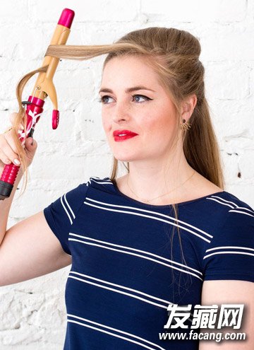 5.都完成之后用卷发棒将前面一小绺头发烫卷。