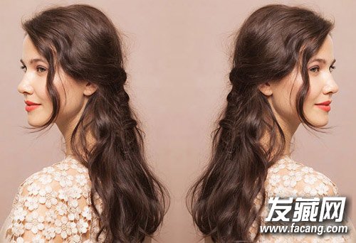 披肩长卷发散发出浪漫气质,半扎发编成辫子后精致俏丽,女人味十足。