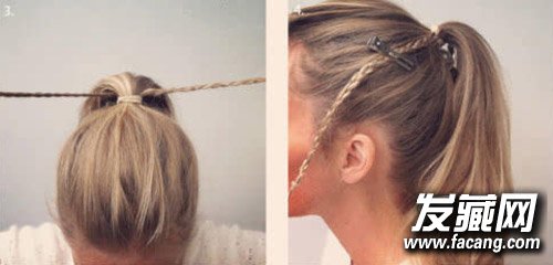 2、从马尾辫灵便各取一股头发进行麻花辫编发,然后将编好的辫子固定在两侧。