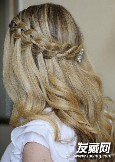 环绕头部的蜈蚣辫,拉松之后的编发形成花瓣一样的西装,搭配长卷发甜美动人。