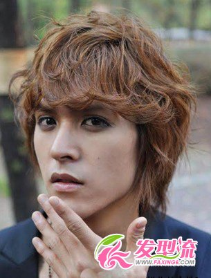 个性的刘海经过较好的烫发技巧打造出非常具有时尚潮流气息的微翘卷度,使得男生的瓜子脸更加的出众!整体的风格都偏向个性的凌乱风,打破了以往男生发型的沉闷感,漂亮的棕黄色染发,搭配藏蓝色的西装,型男出现啦!