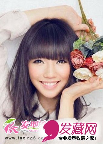 清纯直发的梨花头人见人爱,内扣的发尾修脸又带来甜美的效果。整齐的齐刘海瘦脸效果最佳,让你的脸型看起来十分精巧迷人。