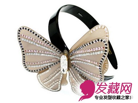 2013年想要在发饰上也踏上潮流的浪尖,夸张的蝴蝶镶钻发箍亲们一定得囤一个,高度刚好在耳朵之上,让方脸和圆脸的姑娘们立刻脸小一圈,无论直发还是卷发都是相当合适而且时髦的哟。