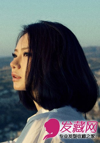 对付不长不短的中长发最简单的办法就是让它自然下垂,然后用卷梳吹成内扣的bob头发型,像戚薇这款长版的bob头,既能修饰脸型,向内卷曲又能避免头发及肩翘起的尴尬,文艺气息十足。
