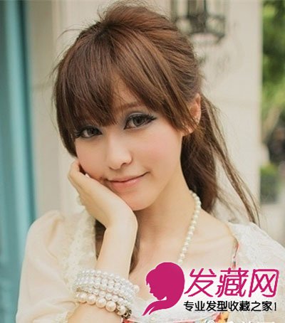 齐刘海的柔和公主头发型,整齐的给小脸脸型一个更加优雅纯净的淑女形象修饰的效果,蓬松的梳发搭配纤长的侧边发发型,更添优雅纯净的公主味道。在脑后简单的梳起的公主头,并不显柔顺的发丝有着极其自然地卷发弧度,大方又不失精致秀气。