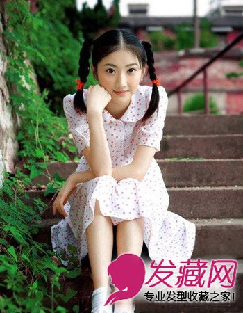 中分双马尾辫,清新、甜美、可爱,学生气息十足。美好的青春才刚开始,稚气未脱,给人纯粹的感觉。