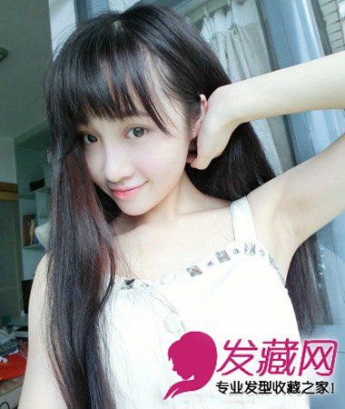 直发发型设计,更是甜美乖巧,自然黑色系发色的直发发型令发型更具光泽感,长直发发型给人无限的清纯靓丽气质。