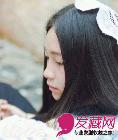 清新的乌黑中分直发发型,略微内收的直发,中分刘海瘦脸修颜,加上发饰搭配,可爱的校园女生发型。