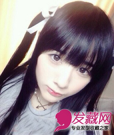 清新可人的日系齐刘海中长直发发型,顺直的长发很有垂坠质感,搭配简单扎发清新可人,适合校园系MM。