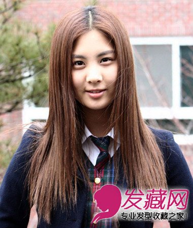 飘逸垂顺的中分直发发型,中分长刘海修颜瘦脸,搭配挑染时髦感十足,很御姐的清新干练。