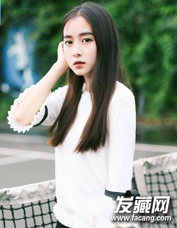 简单的中长直发发型勾勒出别致的时尚感来,而且较为自然的设计增加了造型的时尚感来,气质的中分优雅时尚。