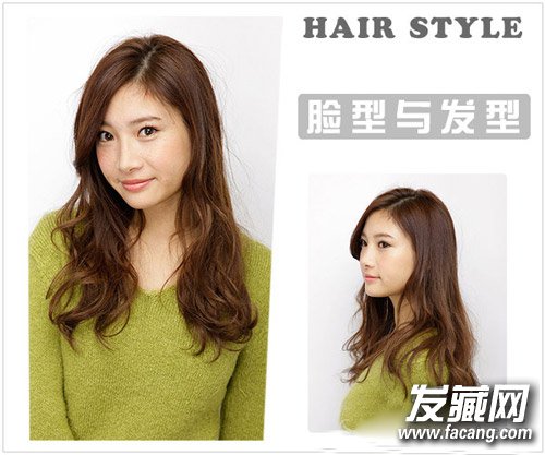 中分发型可以有助于减少面部轮廓的弧度,加上这款长卷发也有拉长脸型的效果,整体瘦脸效果明显哦。
