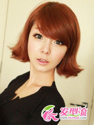 长度短至耳下的发尾做出外翘感,制造出女生的俏皮个性。斜刘海微遮眼眉显现出精致的瓜子脸型,棕色染发彰显出时尚潮流范,俏丽的外形中彰显出帅气的性格。短发显现出优美的颈部线条,搭配黑色上衣更显性感。