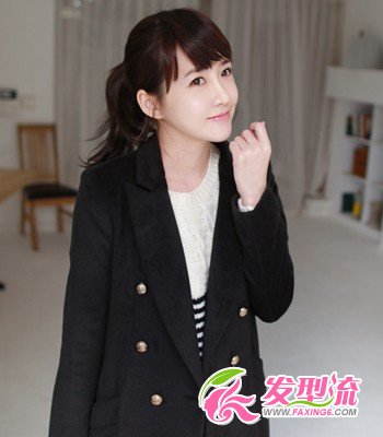 最普通的发型打造出非一般的个性,层次感卷随意扎出自然效果。搭配韩式风格的西装外套,既有女生干练的气质又有休闲的风格,两者结合制造出帅气的特质。齐刘海的衬托下,一双明亮的双眼释放出闪光的光芒。