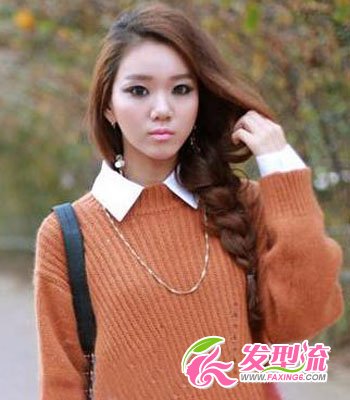 这款同样是麻花辫造型,可见其受欢迎的程度哦!扎辫子的时候,上半部分留出了较多发量,扎好蓬松好看的辫子后,再用手把之前留出来的秀发打造出外拱的弧度,给人耳目一新的感觉,不会落入俗套,也让整个发型显得更有活力。裸额的设计突显MM姣好的五官和脸容。