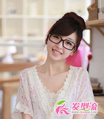 超人气的丸子头,一定不会少哦!柔顺的直发扎出丸子头的造型,无敌甜美可爱,把MM俏皮活泼的个性展现得淋漓尽致,瞬间就可以秒杀大片GG。覆盖式的斜刘海,很好地修饰了脸型,带出几分轻熟女的味道。戴上一副斯文的黑框眼镜,俨然一个高中生的模样,装嫩必备。