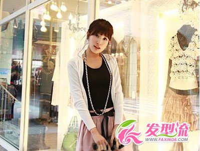 长至眼睛的齐刘海微微向内弧度,把马尾拢到脑后挽成一漂亮的花苞,耳边自然下垂的几缕发鬓,更显甜美可爱。