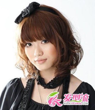 蓬松感十足的韩式发型,自然空气感发梢,让发型充满了活力。黑色的蝴蝶结发饰轻松让发型灵动。