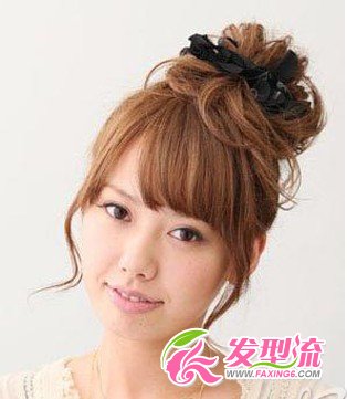 Style3: 韩式可爱发型风格的丸子头,类似香蕉形的发髻,使得这款可爱发型俏皮活泼。搭配精致的细发箍,营造出清凉干净。