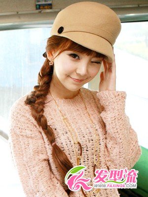 长直发编成麻花辫放在单肩,不规则的编织技巧令发型更有范儿。选择一顶高帽子,不仅能给人焕然一新的形象还有显高的效果哦。粉色的网状针织衫是秋冬季节最流行的搭配,喜欢甜美路线的你,又怎么舍得错过呢?