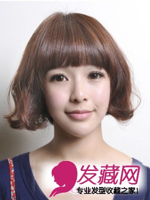 蛋卷头大家都不陌生,通常我们看到的蛋卷头都显得过于成熟,这款齐刘海蛋卷头就显得非常的可爱呢!厚重的齐刘海与微翘波浪的卷度与齐刘海相互衔接,塑造瓜子脸的同事能够提升整体的甜美度!同样采用深色系的发色打造沉稳不浮躁的型格,很百搭的一款春夏发型!