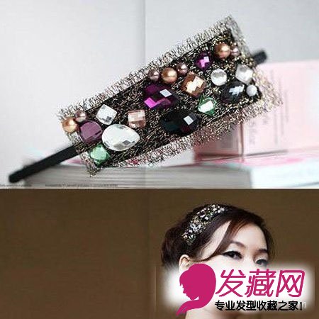 镶满了大小不一,颜色各异的水钻和珠串发箍妖艳妩媚,是Party聚会中最出彩的单品之一,想要脱颖而出可以选择它。