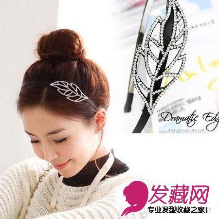 树叶型发箍。由众多细小仿钻组合而成的树叶型发箍戴在头上十分醒目,是韩剧主人公们最常用的搭配饰品。