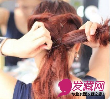 第六步上面固定后,剩下来的头发也都扎成马尾。