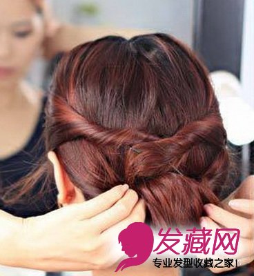 第八步把下面的头发整理成一排。然后全部都塞到固定好的头发下面。