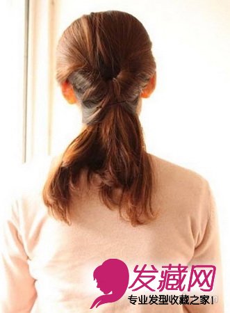 将马尾辫塞到洞中。