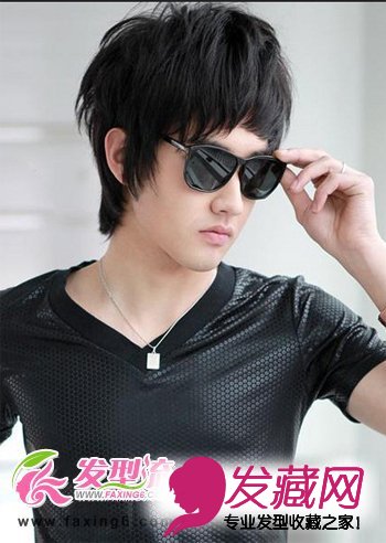 黑色的发色使男生显得更加青春,发色的蓬松度,让发型更加自然,两鬓的头发稍长,凸显出秀气的脸蛋,墨镜的搭配,酷酷的帅气造型感十足。