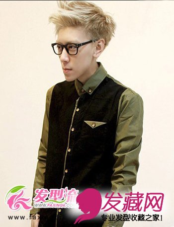 类似飞机头飞韩式男生发型,非常的有造型感,头发的立体感将男生的脸整个拉长,帅气十足,金色的染发,颇具个性,走在街上,绝对是万众瞩目的焦点。
