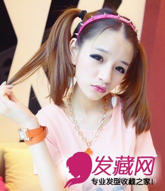 俏皮可爱的双扎马尾发型是一款极其简单韩式发型扎法,高高扎起的双马尾造型,展现出女生俏皮活泼的气质,刘海发型利用发箍挽至头顶,将女生的脸蛋展露无遗,增加了这款简单韩式发型扎法的清爽感。