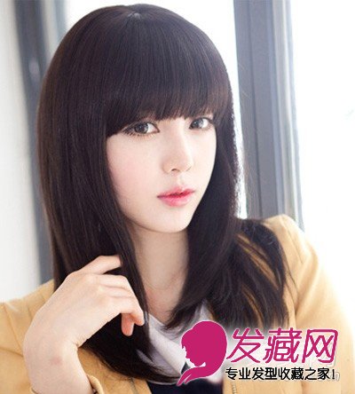 小编点评:披肩的中长直发,配上内扣的弧度刘海显得青春减龄。栗色的发色更显淑女的知性美。